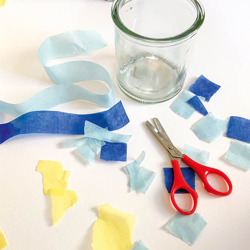 1. Riv strimler av kalkerpapir i små biter.
