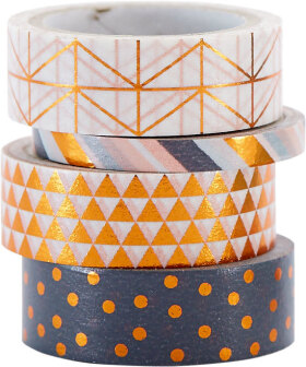 Washi-tape kobber, 4-pk 3x 5 m x 1,5 cm + 1x 5 m x 0,5 cm